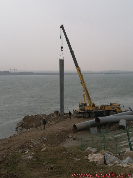 在預(yù)報(bào)最冷的冬天,湖南航務(wù)公司給了我們長沙大秦一個(gè)深情的擁抱,讓我們參與在岳陽長江邊安裝浮動(dòng)船塢定位樁。